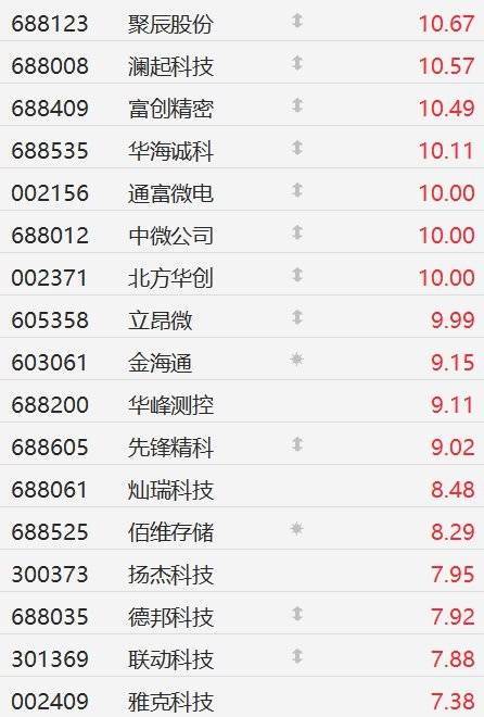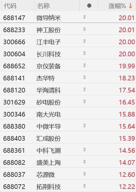 今日A股市场芯片股大面积涨停。截至半日收盘,微导纳米、神工股份、江丰电子、长川科技20CM涨停,京仪装备逼近20CM涨停,杰华特涨好18%,华海清科涨超17%深圳股指期货配资,矽电股份涨超6%,南大光电、中微半导、汇成股份涨超15%,通富微电、中微公司、北方华创、立昂微10CM涨停。